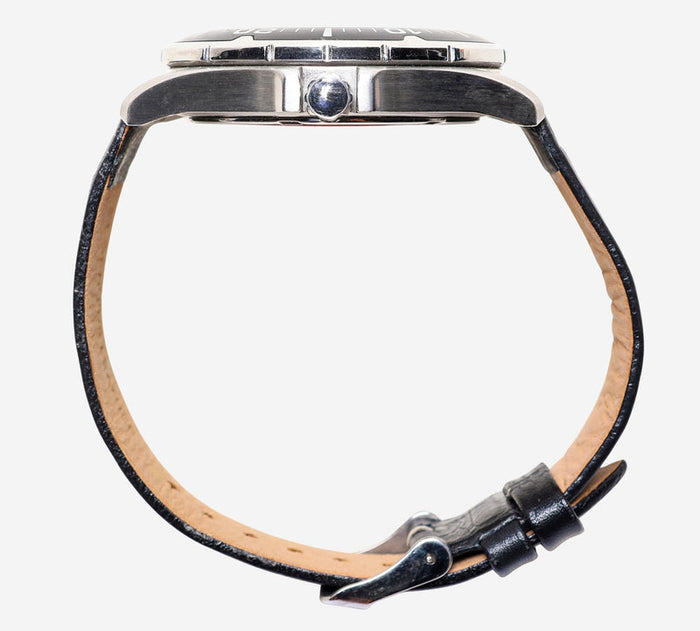This pre-owned Pulsar watch is in Excellent condition featuring Quartz Analog movement, with a Black case and a Black Leather 7 inch band. Own a piece of watchmaking history and give this watch a second life. All watch movements and batteries have been tested and operate as intended. No battery included for D5quartz watches. We cannot guarantee water resistance ratings are intact.