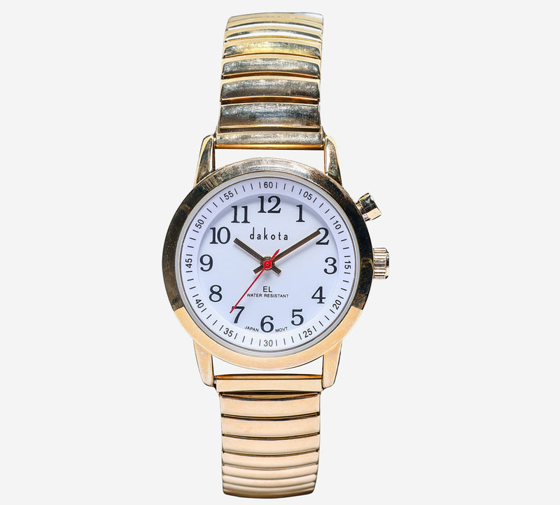 This pre-owned Dakota watch is in Excellent condition featuring Quartz Analog movement, with a Gold case and a Gold Metal 7 inch band. Own a piece of watchmaking history and give this watch a second life. All watch movements and batteries have been tested and operate as intended. No battery included for D5quartz watches. We cannot guarantee water resistance ratings are intact.