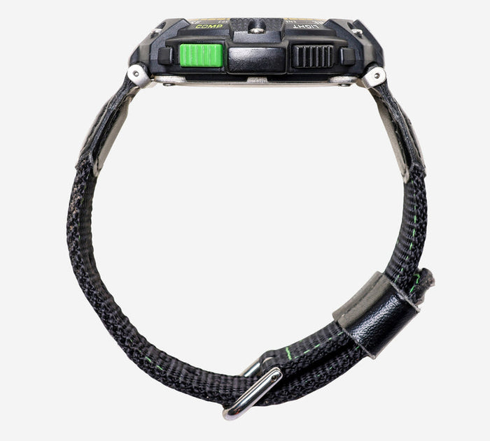 This pre-owned Casio watch is in Good condition featuring Quartz Digital movement, with a Black case and a Black Fabric 7.5 inch band. Own a piece of watchmaking history and give this watch a second life. All watch movements and batteries have been tested and operate as intended. No battery included for D5quartz watches. We cannot guarantee water resistance ratings are intact.