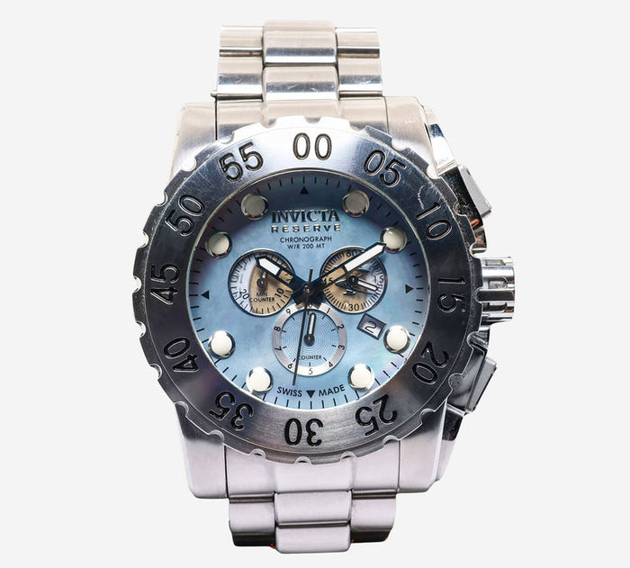 Invicta Rewound Large Reserve Silver Colored and Blue Quartz Analog Watch 55mm
