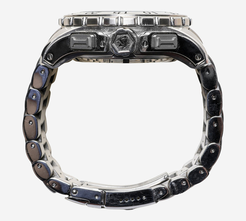 This pre-owned Invicta watch is in Excellent condition featuring Quartz Analog movement, with a Silver case and a Silver Metal 7.5 inch band. Own a piece of watchmaking history and give this watch a second life. All watch movements and batteries have been tested and operate as intended. No battery included for D5quartz watches. We cannot guarantee water resistance ratings are intact.