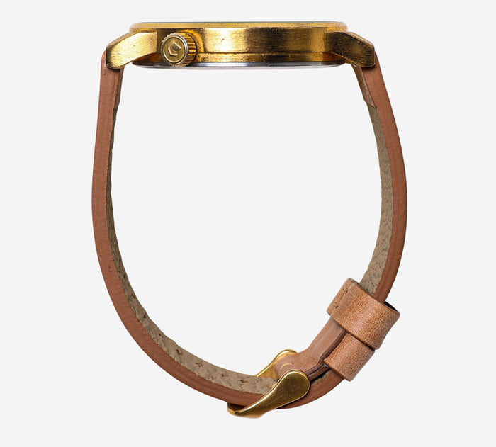This pre-owned Komono watch is in Good condition featuring Quartz Analog movement, with a Gold case and a Sand Leather 7 inch band. Own a piece of watchmaking history and give this watch a second life. All watch movements and batteries have been tested and operate as intended. No battery included for D5quartz watches. We cannot guarantee water resistance ratings are intact.