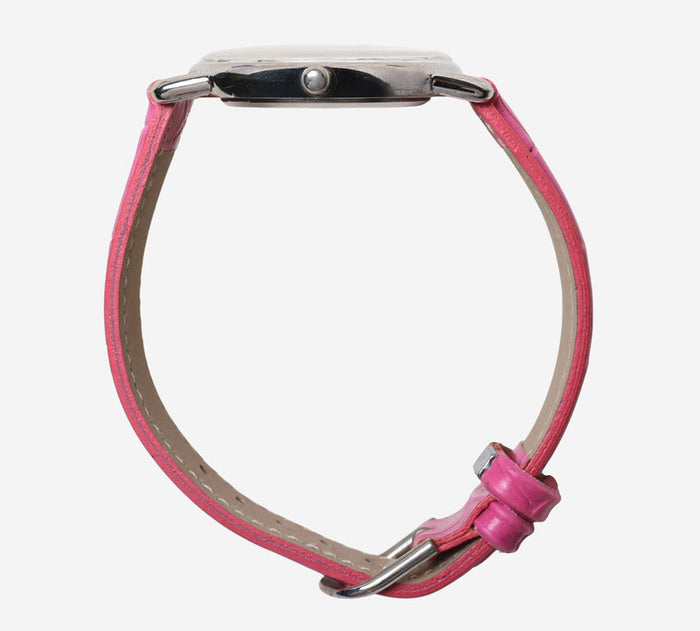 This pre-owned Da Vanci watch is in Excellent condition featuring Quartz Analog movement, with a Silver case and a Pink Leather 7 inch band. Own a piece of watchmaking history and give this watch a second life. All watch movements and batteries have been tested and operate as intended. No battery included for D5quartz watches. We cannot guarantee water resistance ratings are intact.