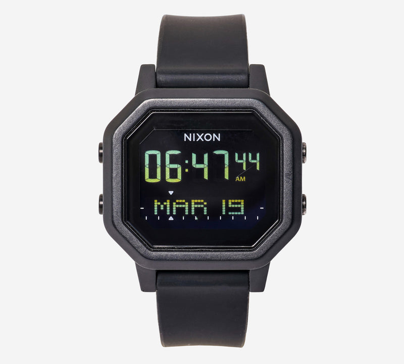 This pre-owned Nixon watch is in Good condition featuring Quartz Digital movement, with a Black case and a Black Resin 7 inch band.