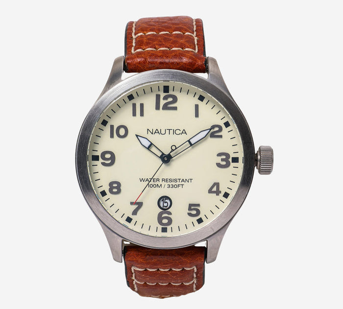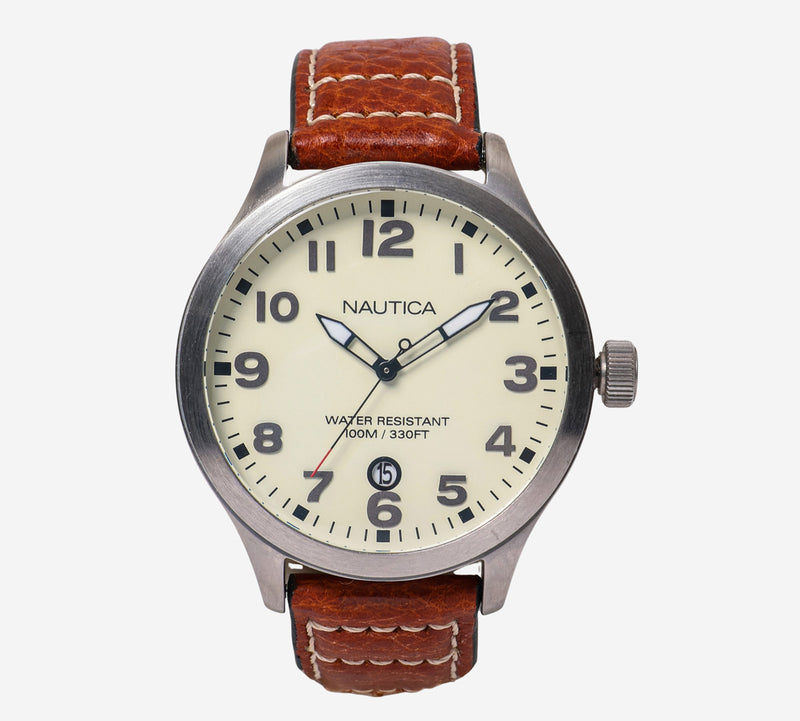 Nautica Rewound Silver and Brown Colored Quartz Analog Watch 40mm