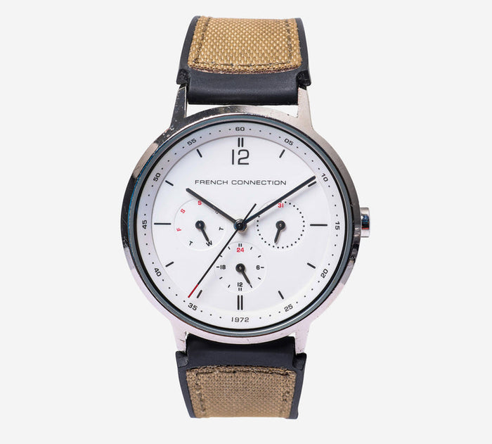 French Connection Rewound Silver and Tan Quartz Analog Watch 40mm