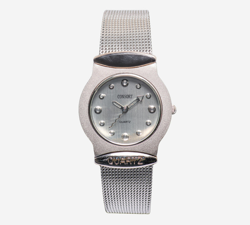 This pre-owned Consort watch is in Excellent condition featuring Quartz Analog movement, with a Silver case and a Silver Metal 7 inch band 30mm