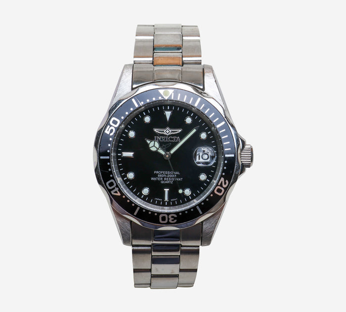 This pre-owned Invicta watch is in Excellent condition featuring Quartz Analog movement, with a Silver Case and a Silver Metal band. Own a piece of watchmaking history and give this watch a second life. All watch movements and batteries have been tested and operate as intended. No battery included for D5quartz watches. We cannot guarantee water resistance ratings are intact.