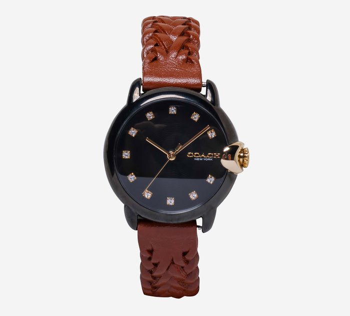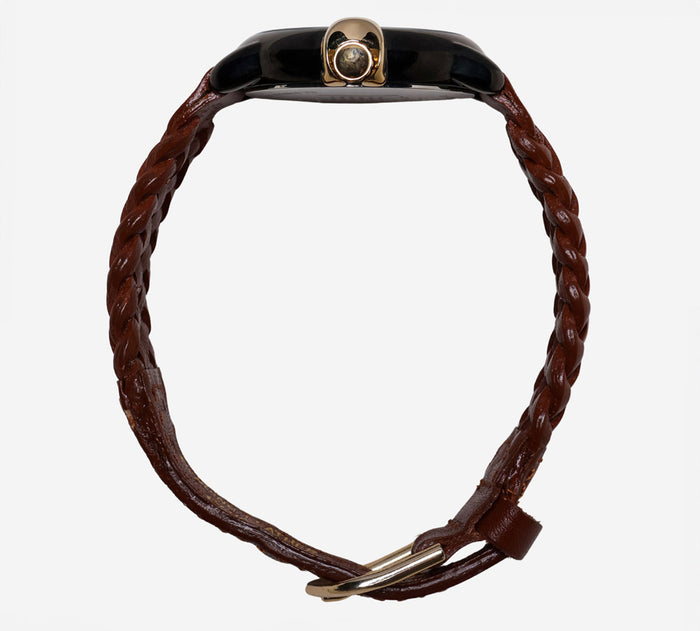This pre-owned watch is in Excellent condition featuring a Black Case, Brown Leather, and Quartz Analog movement. This watch has a soul and a story to be told, continue its legacy with a second life.
