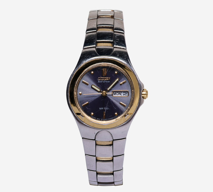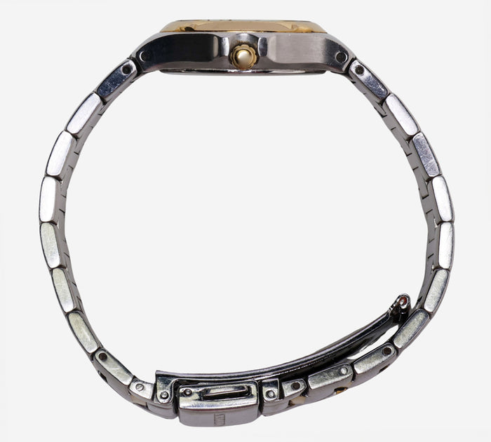 This pre-owned watch is in Good condition featuring a Silver and Gold Case, Silver Bracelet and Quartz Analog movement. This watch has a soul and a story to be told, continue its legacy with a second life.