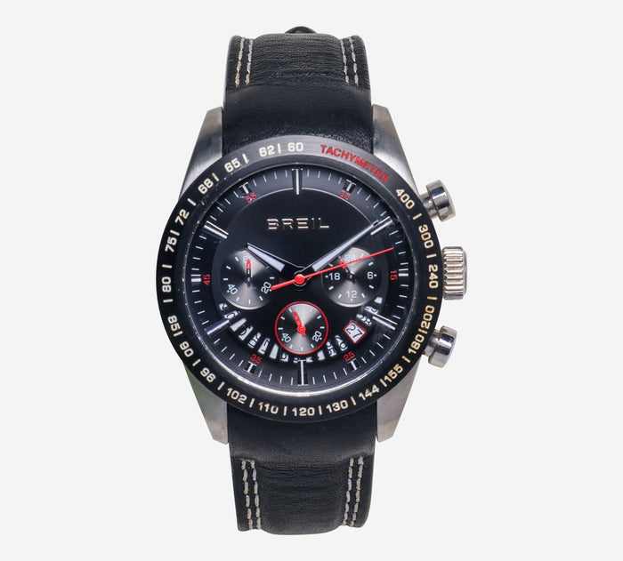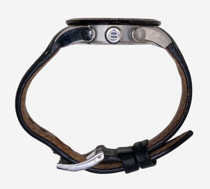 This pre-owned watch is in Good condition featuring a Black Case, Black Leather and Quartz Analog movement. This watch has a soul and a story to be told, continue its legacy with a second life.