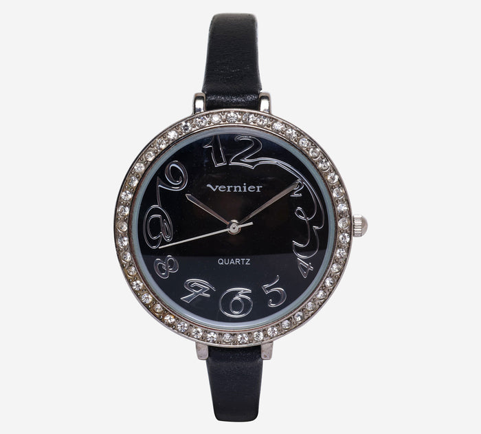 Vernier Rewound Silver Diamond and Black Quartz Analog Watch