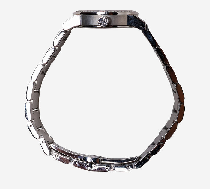 This pre-owned watch is in Excellent condition featuring a Silver Diamond Case, Silver Metal Bracelet and Quartz Analog movement. This watch has a soul and a story to be told, continue its legacy with a second life.