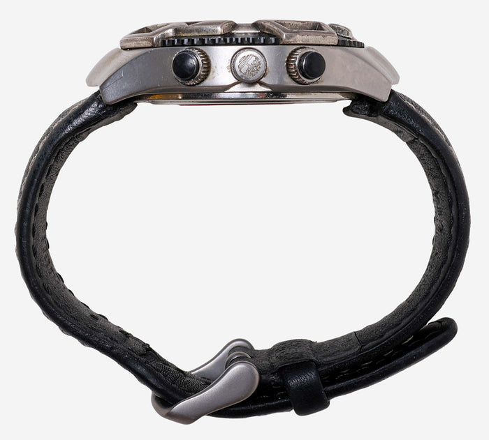 This pre-owned watch is in Good condition featuring a Silver Case, Black Leather and Quartz Analog movement. This watch has a soul and a story to be told, continue its legacy with a second life.