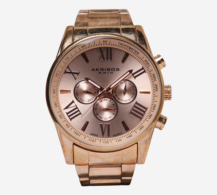 Akribos Rewound Gold Round Metal Bracelet Quartz Analog Watch