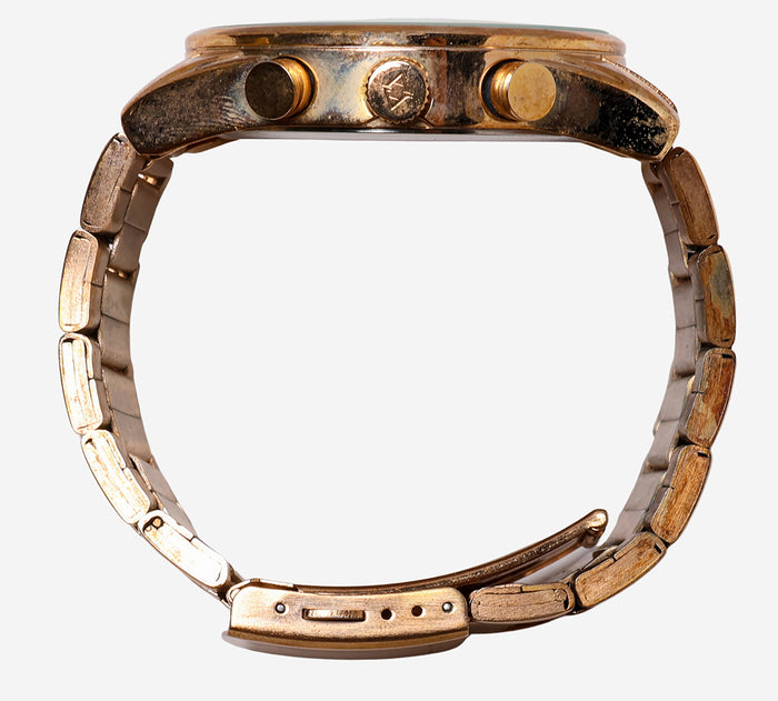 This pre-owned watch is in Good condition featuring a Gold Case, Gold Metal and Quartz Analog movement. This watch has a soul and a story to be told, continue its legacy with a second life.