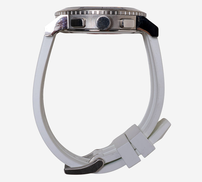 This pre-owned watch is in Excellent condition featuring a Silver Case, and White Resin and Quartz Analog movement. This watch has a soul and a story to be told, continue its legacy with a second life.