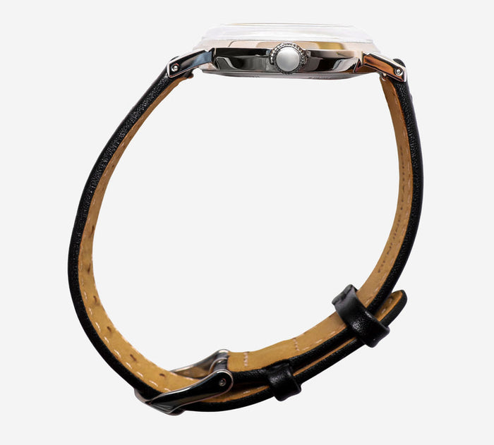 This pre-owned Timex watch is in Excellent condition featuring Automatic movement, with a Silver case and a Black Leather 7 inch band. 30mm
