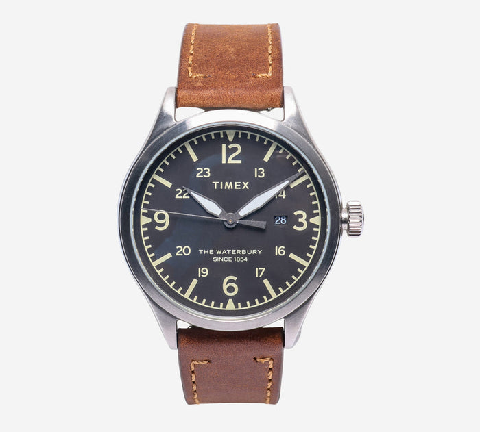 Timex Rewound Waterbury Silver and Brown Quartz Analog Watch