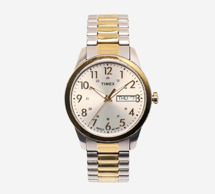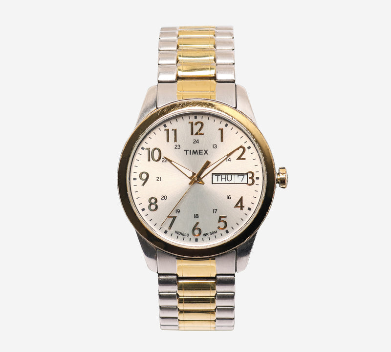 Timex Rewound Round Gold and Silver Metal Bracelet Quartz Analog Watch