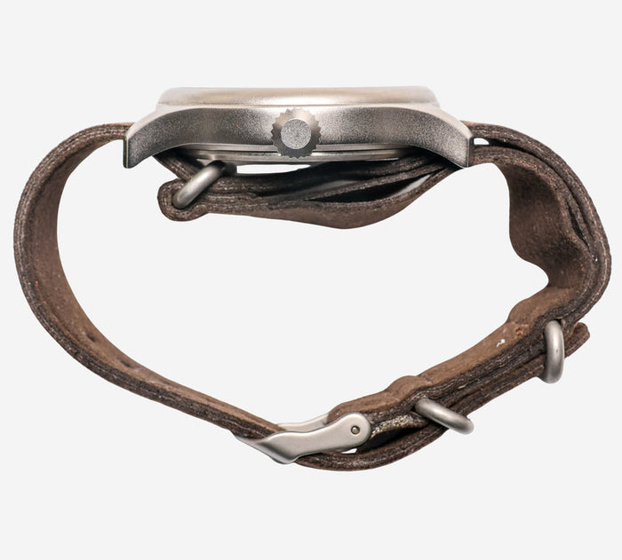 This pre-owned Timex watch is in Good condition featuring Quartz Analog movement, with a Silver case and a Brown Leather 7 inch band. 35mm