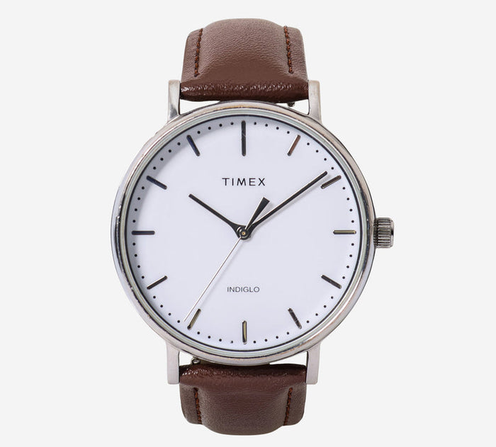 Timex Rewound Round Silver Colored and Brown Quartz Analog Watch 40mm