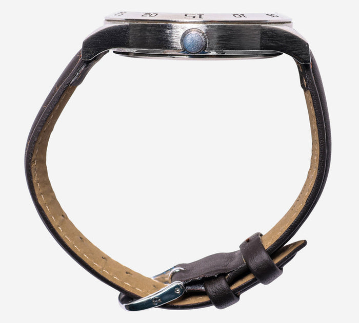 This pre-owned Timex watch is in Excellent condition featuring Quartz Analog movement, with a Silver case and a Brown Leather 7 inch band 40mm