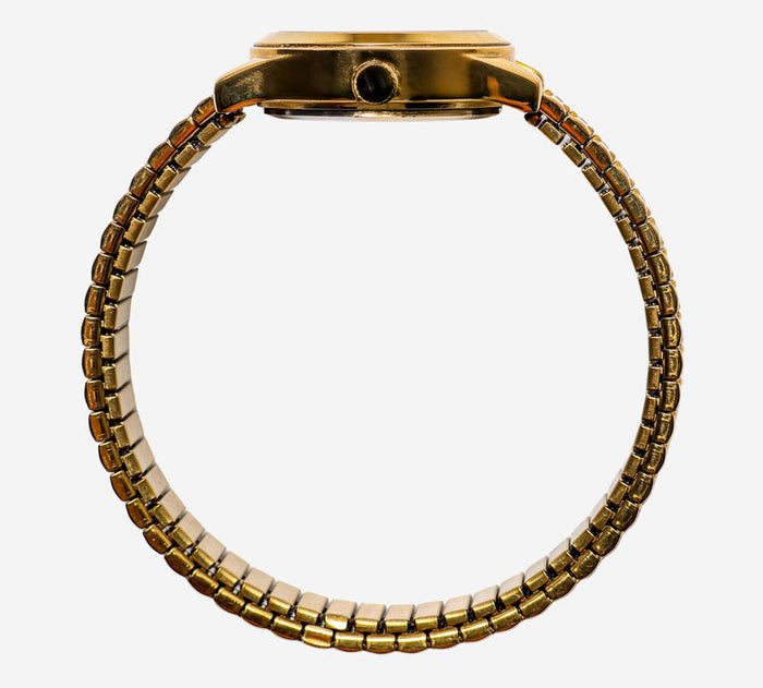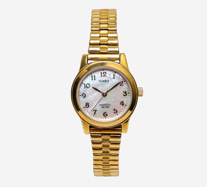 This pre-owned Timex watch is in Excellent condition featuring Quartz Analog movement, with a Gold case and a Gold Metal 7 inch band 25mm