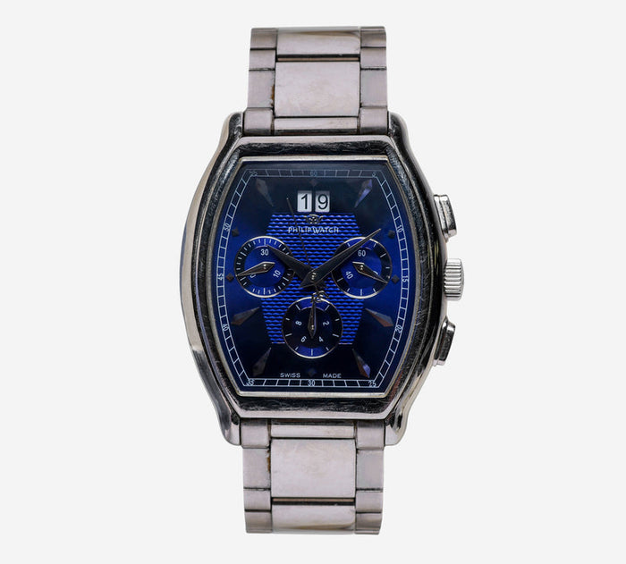 Philip Watch Rewound Blue and Silver Metal Bracelet Quartz Analog Watch 40mm
