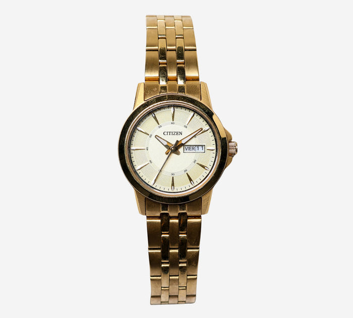 Citizen Rewound Gold Metal with Date Quartz Analog Watch