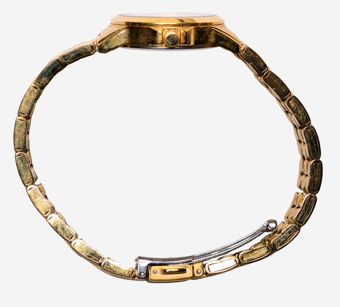 This pre-owned Citizen watch is in Excellent condition featuring Quartz Analog movement, with a Gold case and a Gold Metal 7 inch band. Own a piece of watchmaking history and give this watch a second life. All watch movements and batteries have been tested and operate as intended. No battery included for D5quartz watches. We cannot guarantee water resistance ratings are intact.