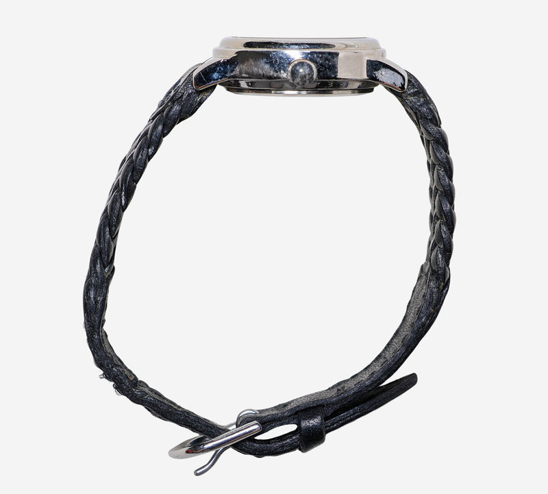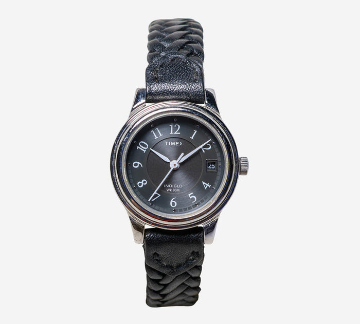 This pre-owned Timex watch is in Good condition featuring Quartz Analog movement, with a Silver case and a Black Leather 7 inch band. Own a piece of watchmaking history and give this watch a second life. All watch movements and batteries have been tested and operate as intended. No battery included for D5quartz watches. We cannot guarantee water resistance ratings are intact.