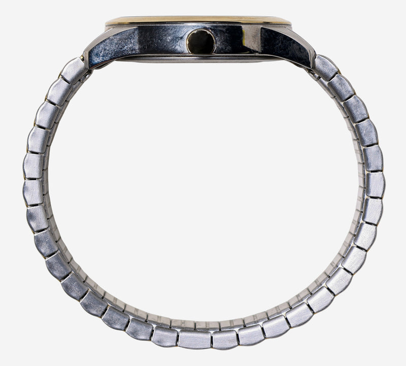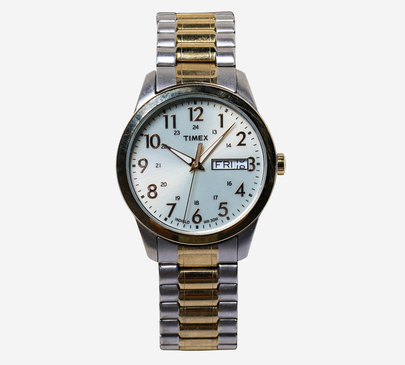This pre-owned Timex watch is in Excellent condition featuring Quartz Analog movement, with a Gold case and a Silver and Gold Metal 7 inch band. Own a piece of watchmaking history and give this watch a second life. All watch movements and batteries have been tested and operate as intended. No battery included for D5quartz watches. We cannot guarantee water resistance ratings are intact.