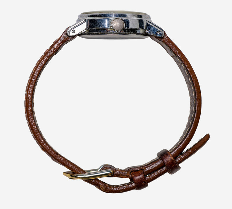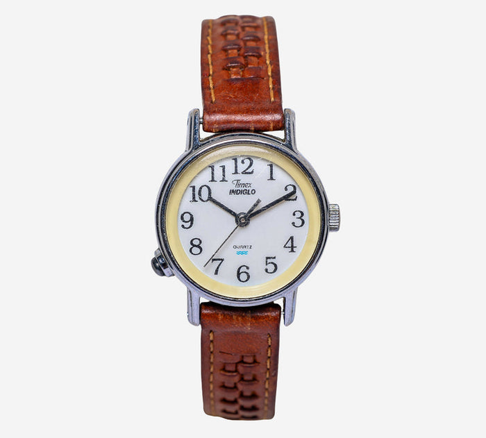 This pre-owned Timex watch is in Good condition featuring Quartz Analog movement, with a Silver case and a Brown Leather 7 inch band. Own a piece of watchmaking history and give this watch a second life. All watch movements and batteries have been tested and operate as intended. No battery included for D5quartz watches. We cannot guarantee water resistance ratings are intact.