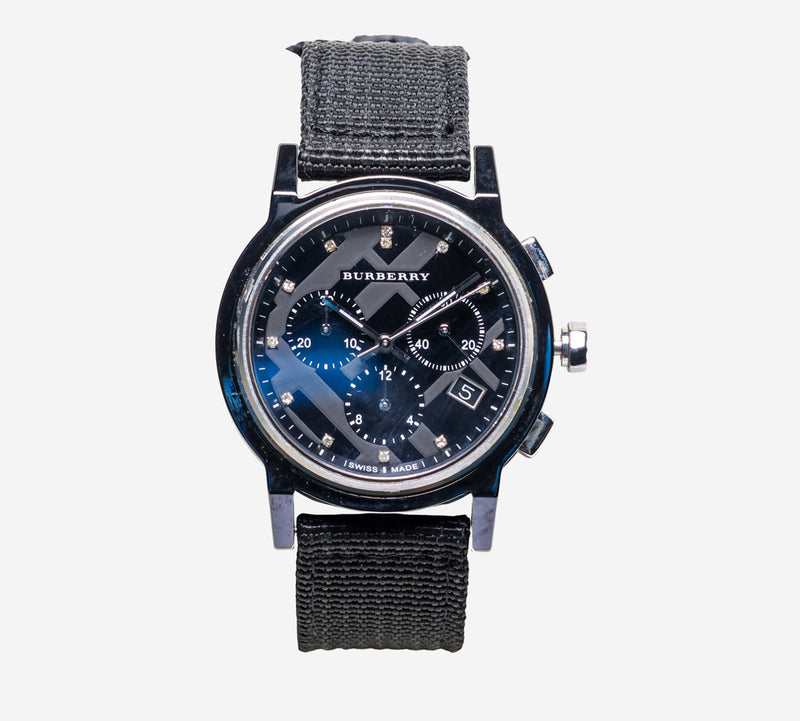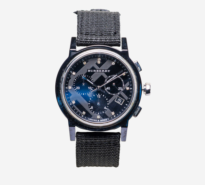 This pre-owned Burberry watch is in Good condition featuring Quartz Analog movement, with a Silver case and a Black Fabric 7 inch band. Own a piece of watchmaking history and give this watch a second life. All watch movements and batteries have been tested and operate as intended. No battery included for D5quartz watches. We cannot guarantee water resistance ratings are intact.