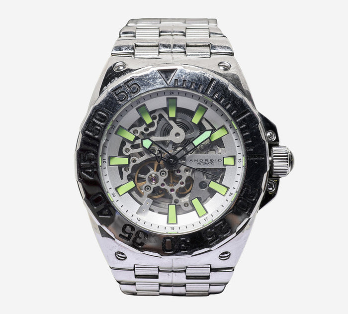 Android Rewound Silver Colored Metal Bracelet Automatic Watch 50mm
