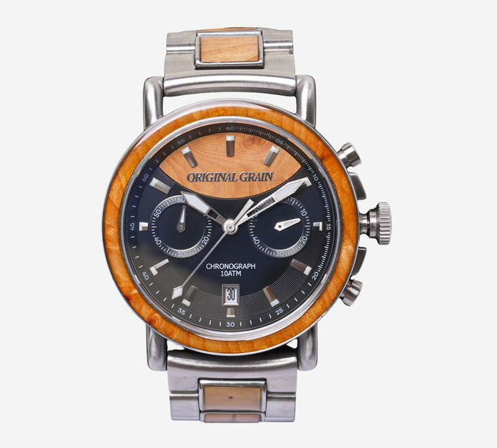 Original Grain Rewound Silver Colored Chronograph Quartz Analog Watch 40mm