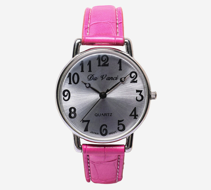 This pre-owned Da Vanci watch is in Excellent condition featuring Quartz Analog movement, with a Silver case and a Pink Leather 7 inch band. Own a piece of watchmaking history and give this watch a second life. All watch movements and batteries have been tested and operate as intended. No battery included for D5quartz watches. We cannot guarantee water resistance ratings are intact.