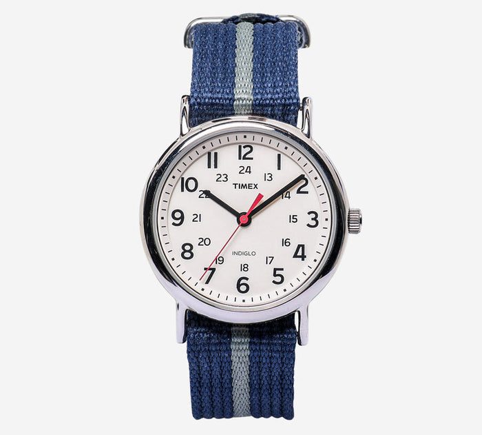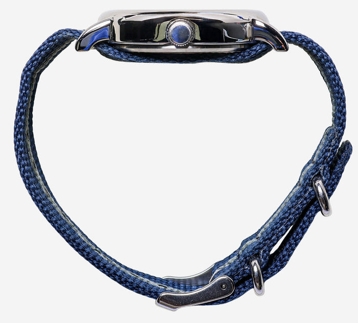 This pre-owned Timex watch is in Excellent condition featuring Quartz Analog movement, with a Silver case and a Blue and Green Fabric 7.5 inch band. Own a piece of watchmaking history and give this watch a second life. All watch movements and batteries have been tested and operate as intended. No battery included for D5quartz watches. We cannot guarantee water resistance ratings are intact.