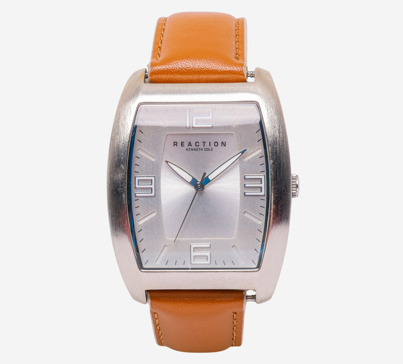 This pre-owned Kenneth Cole watch is in Good condition featuring Quartz Analog movement, with a Silver case and a Tan Leather 7 inch band 35mm